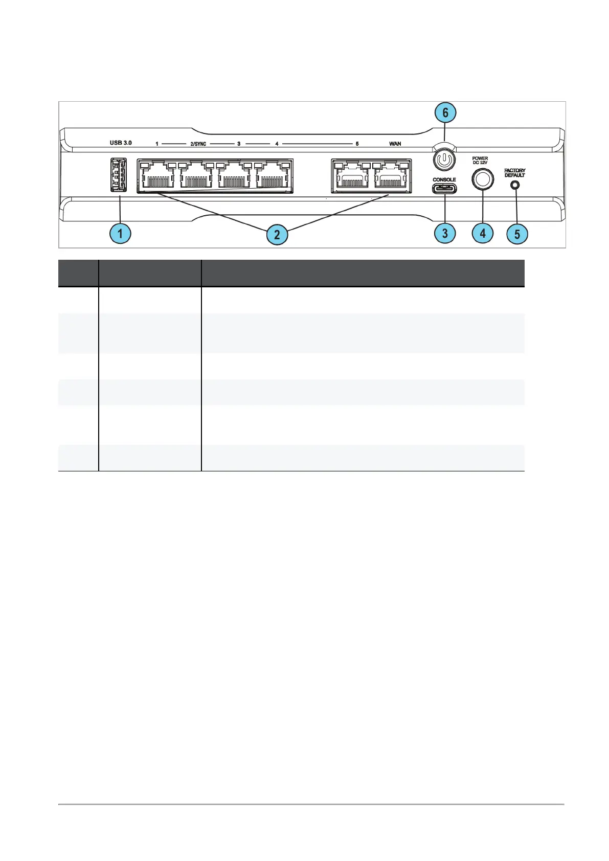 LAN ports 1-5, LAN 2/Sync.