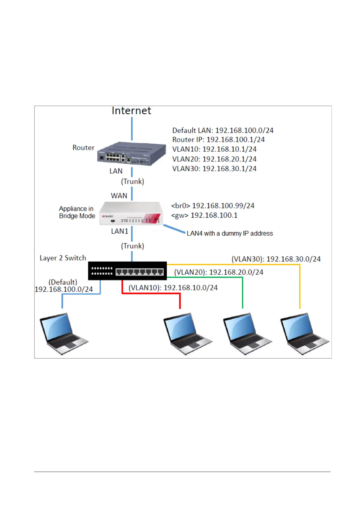 [SWITCH] --- VLAN Trunk --- (LAN) [Appliance in Bridge Mode] (WAN) --- VLAN Trunk --- [ROUTER]