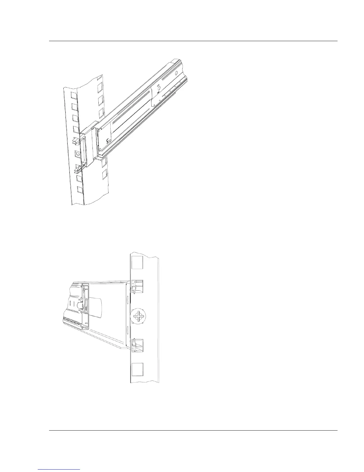 5. From the rear of the rack, use a round-head screw to secure the rack rail to the rack.