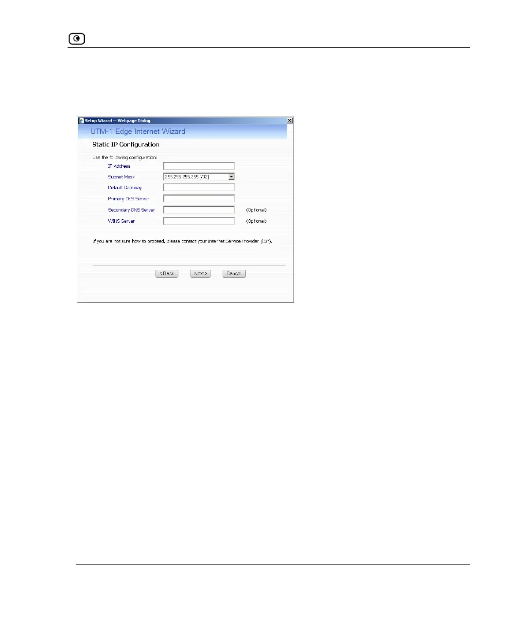 If you selected the Static IP connection method, the Static IP Configuration dialog box