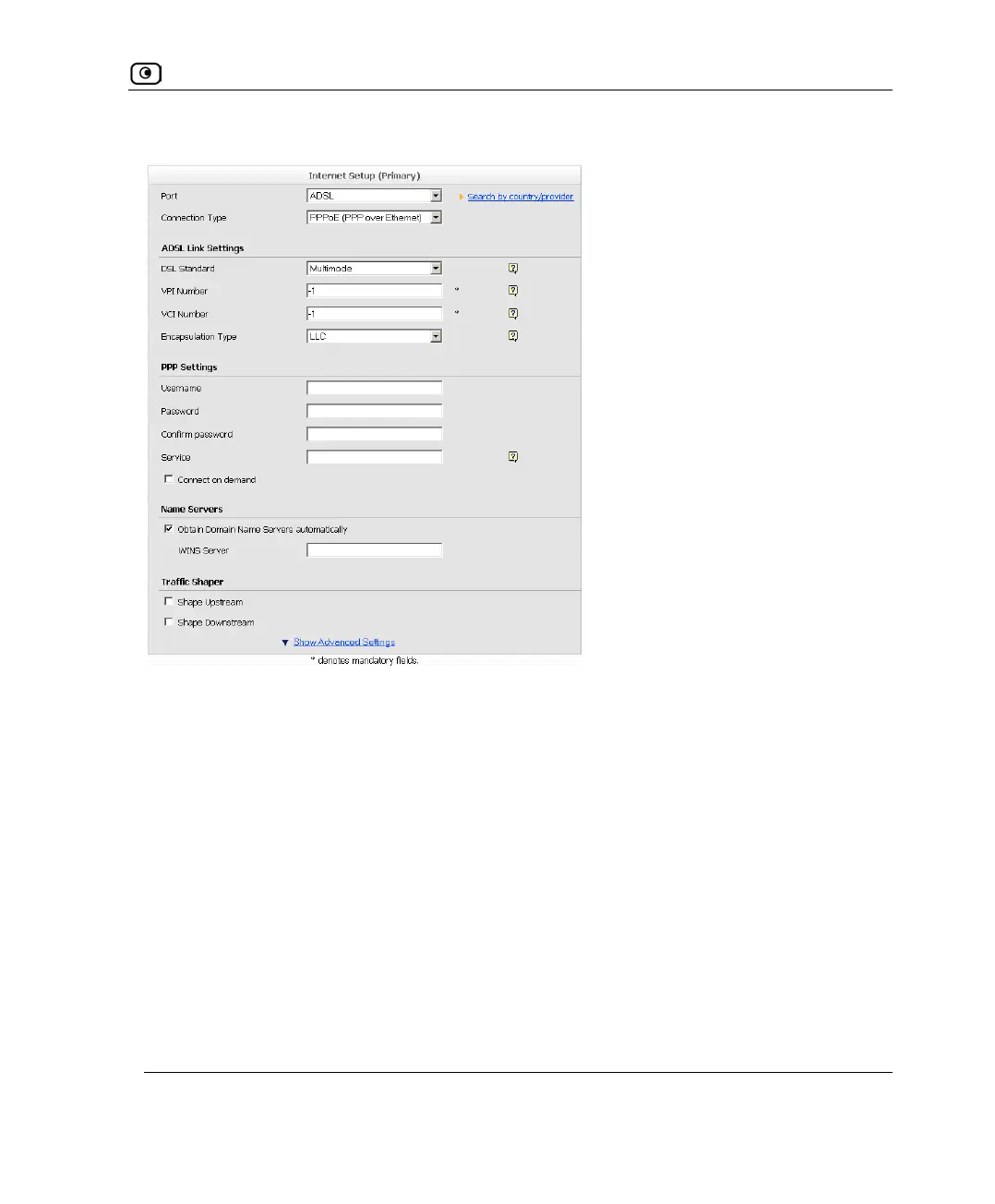 1. Complete the fields using the relevant information in Internet Setup Fields on