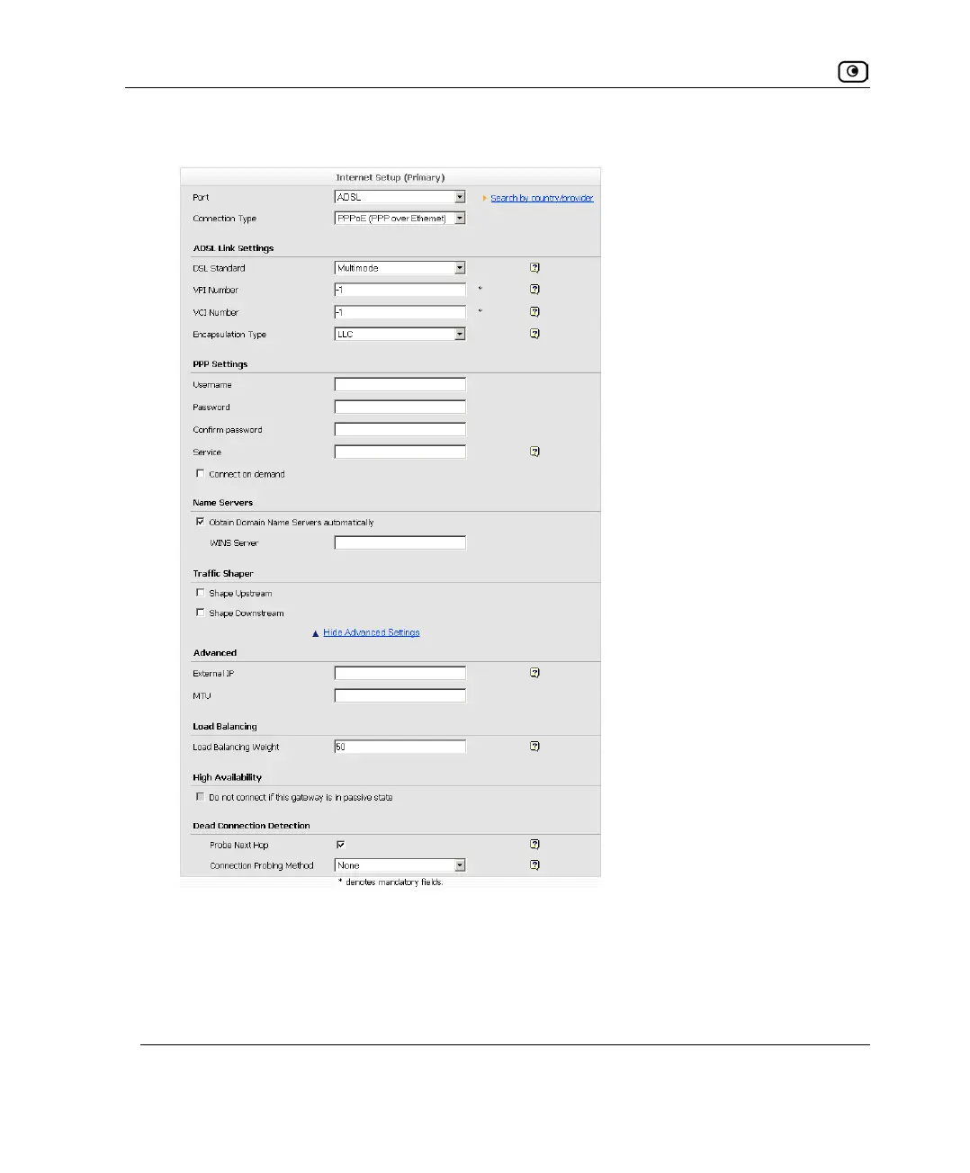 New fields appear, depending on the check boxes you selected.