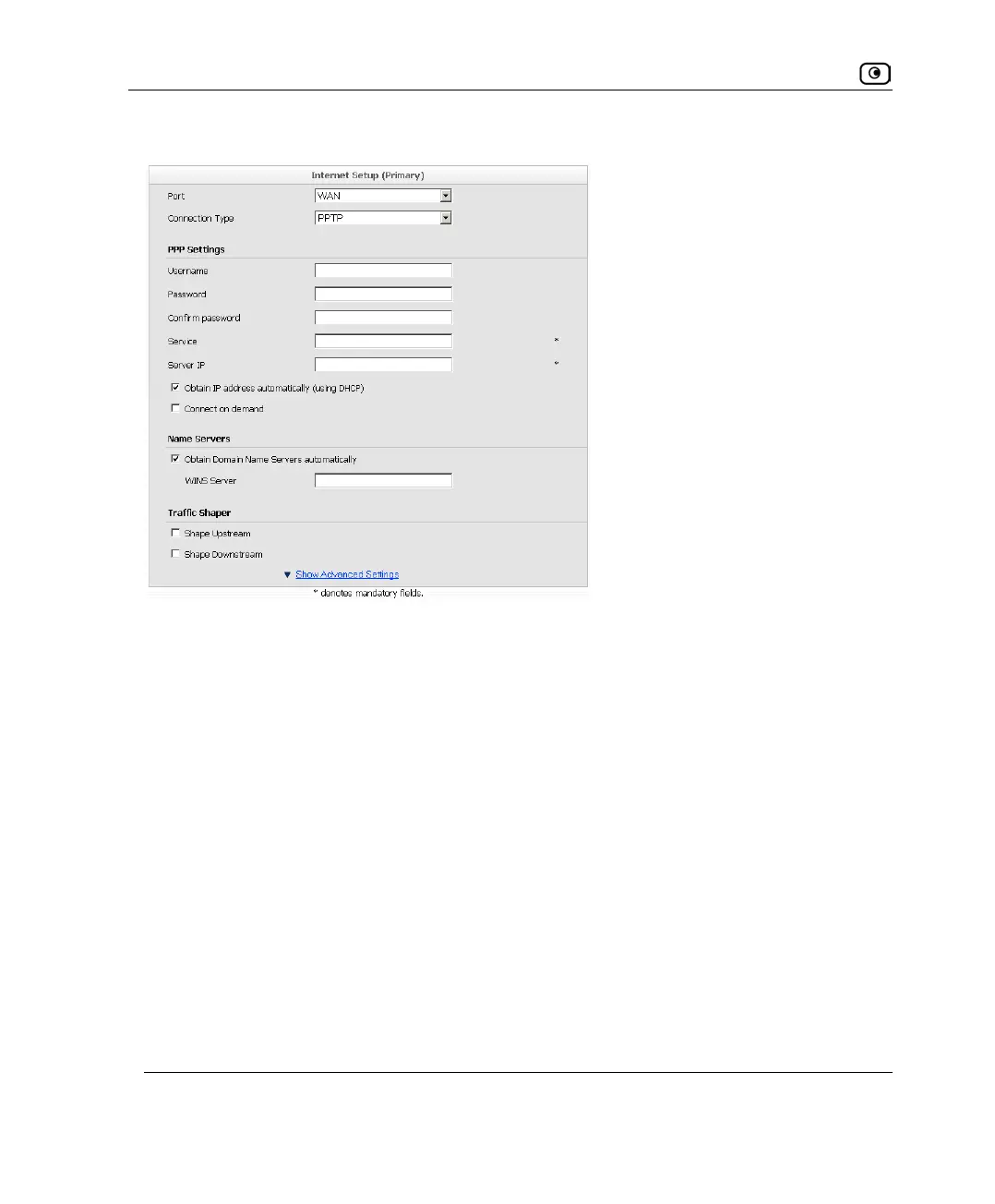 1. Complete the fields using the relevant information in Internet Setup Fields on
