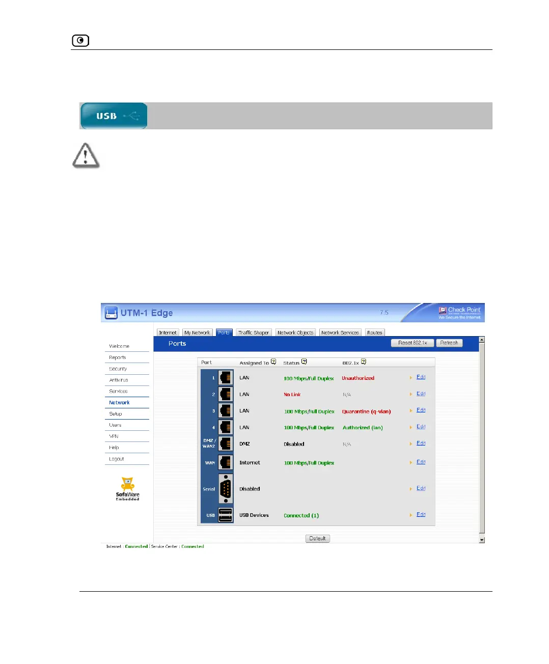 1. Connect a USB-based modem to one of your UTM-1 appliance's USB ports.