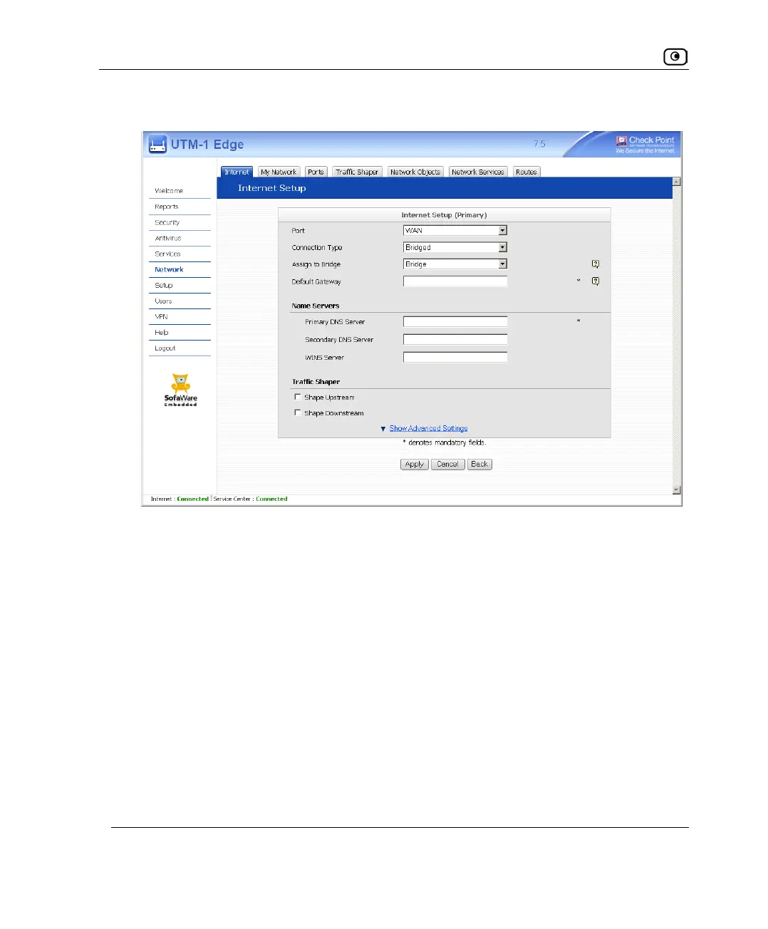 6. Complete the rest of the fields using the relevant information in Internet Setup