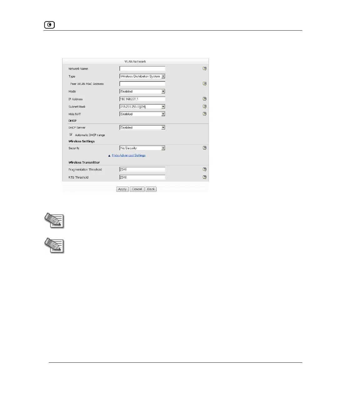 Note: WDS links support using the WEP security mode or no security. However, the
