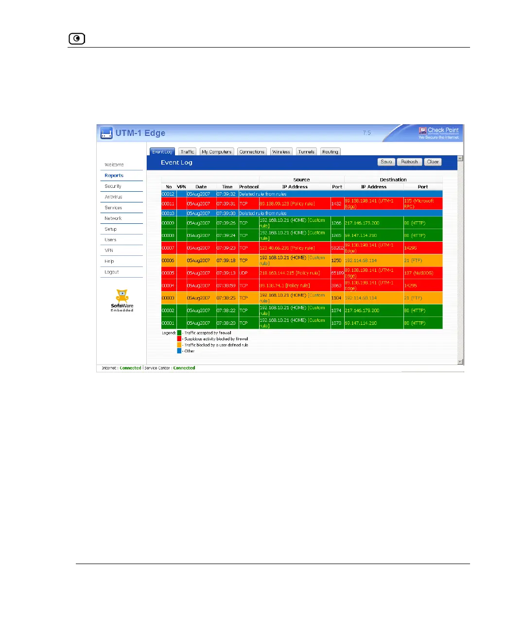 1. Click Reports in the main menu, and click the Event Log tab.