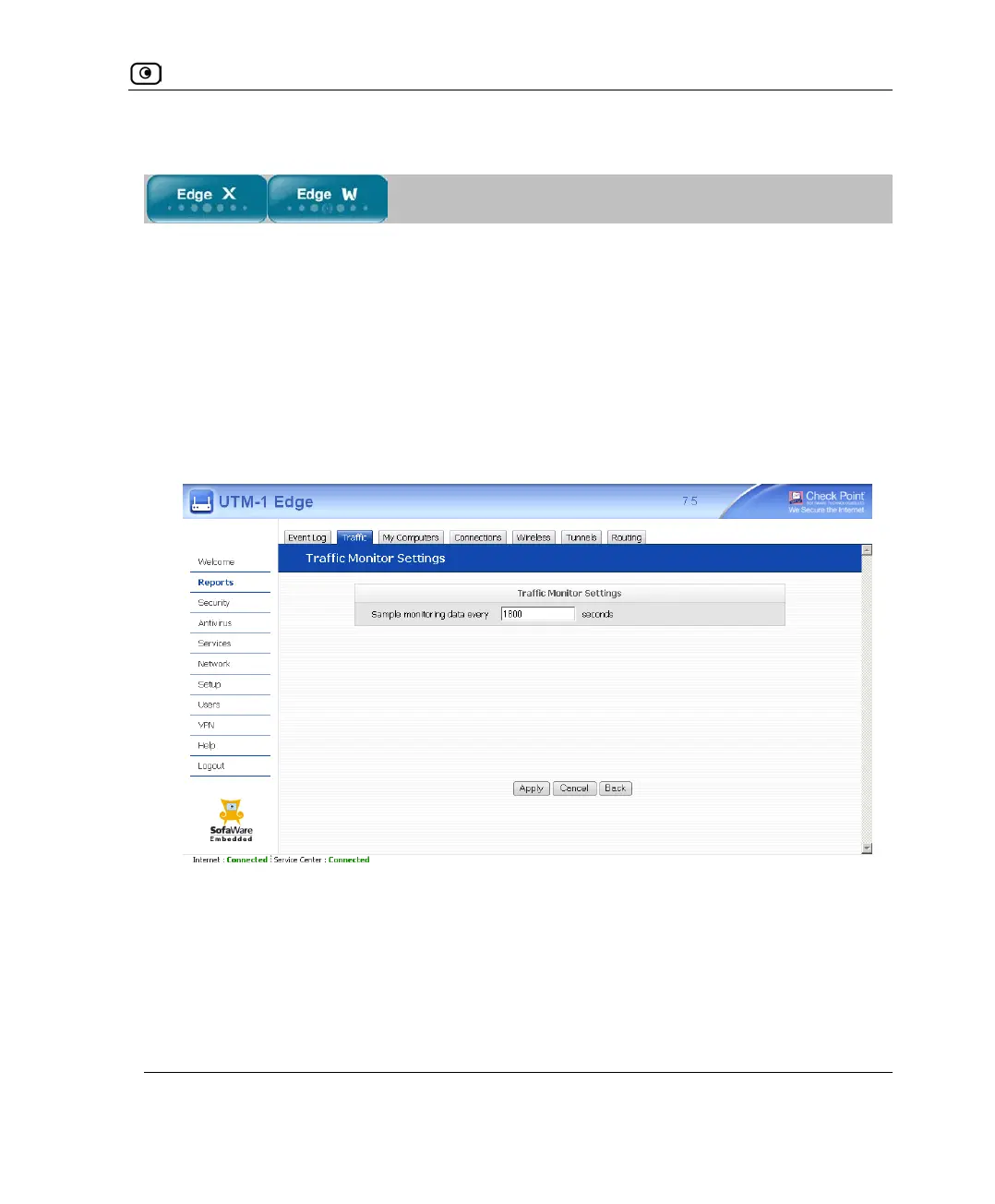 You can configure the interval at which the UTM-1 appliance should collect traffic data