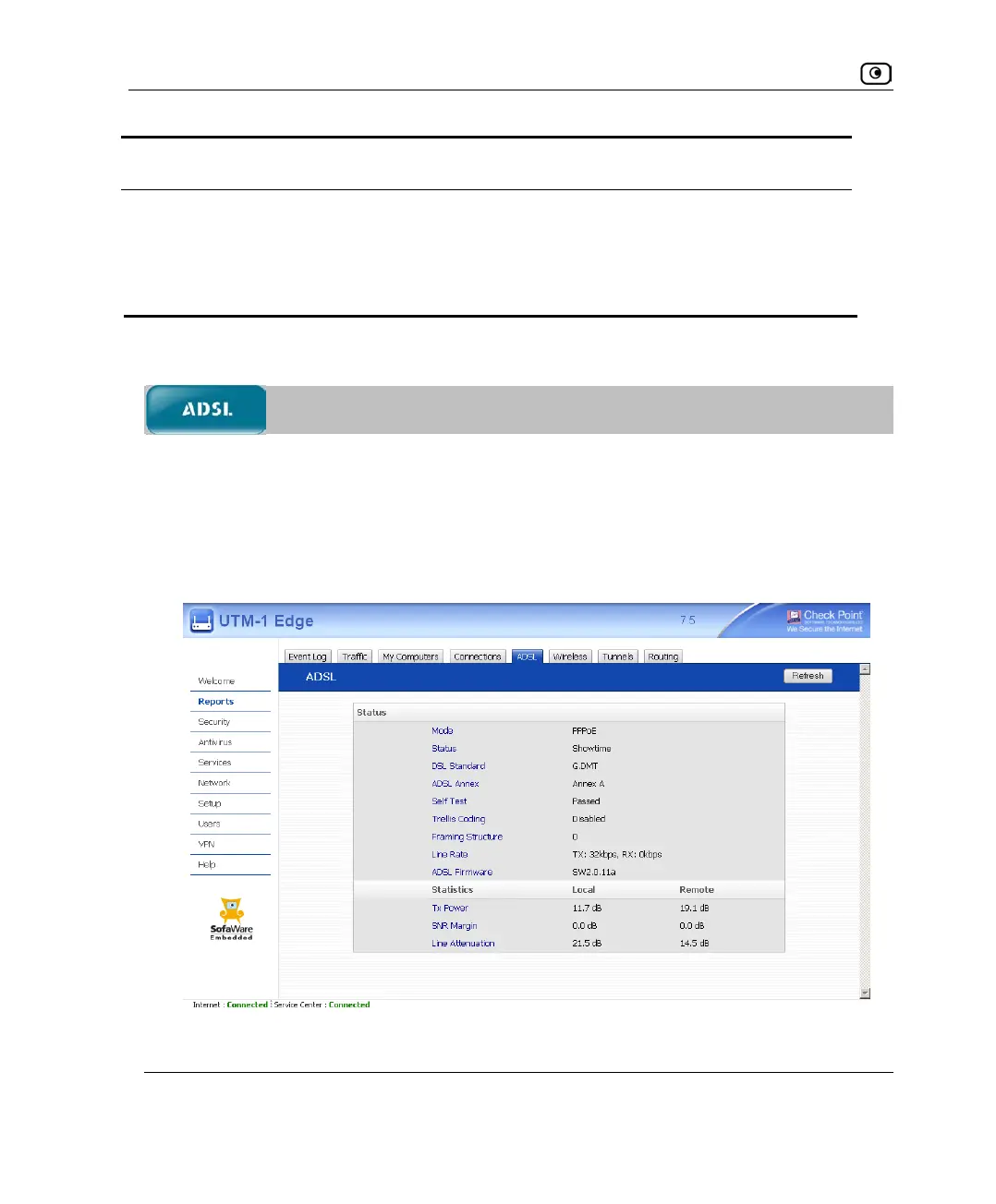 1. Click Reports in the main menu, and click the ADSL tab.