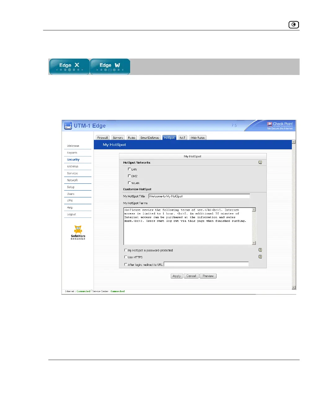 • To enable Secure HotSpot for a specific network, select the check box next to