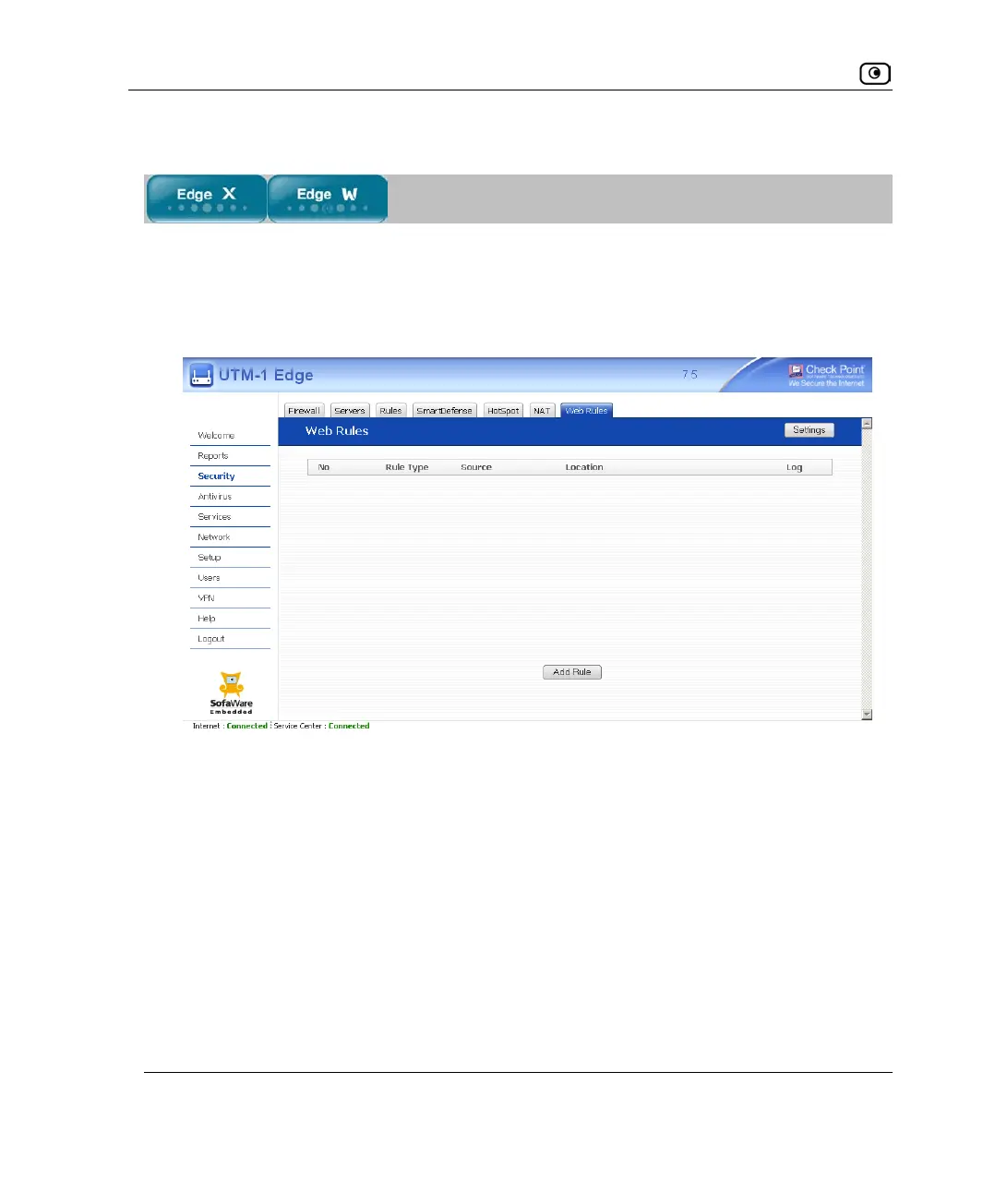 1. Click Security in the main menu, and click the Web Rules tab.