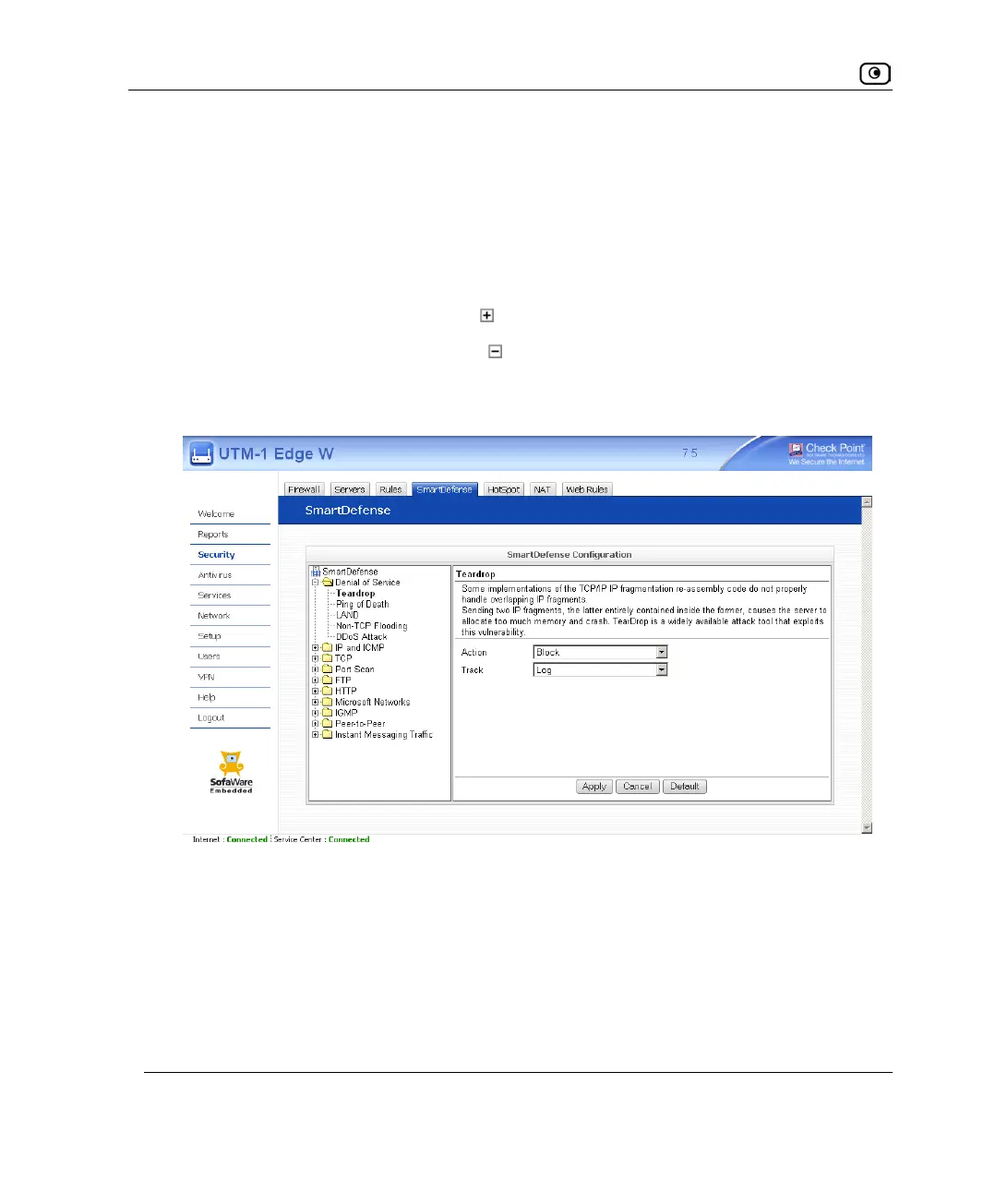 1. Click Security in the main menu, and click the SmartDefense tab.