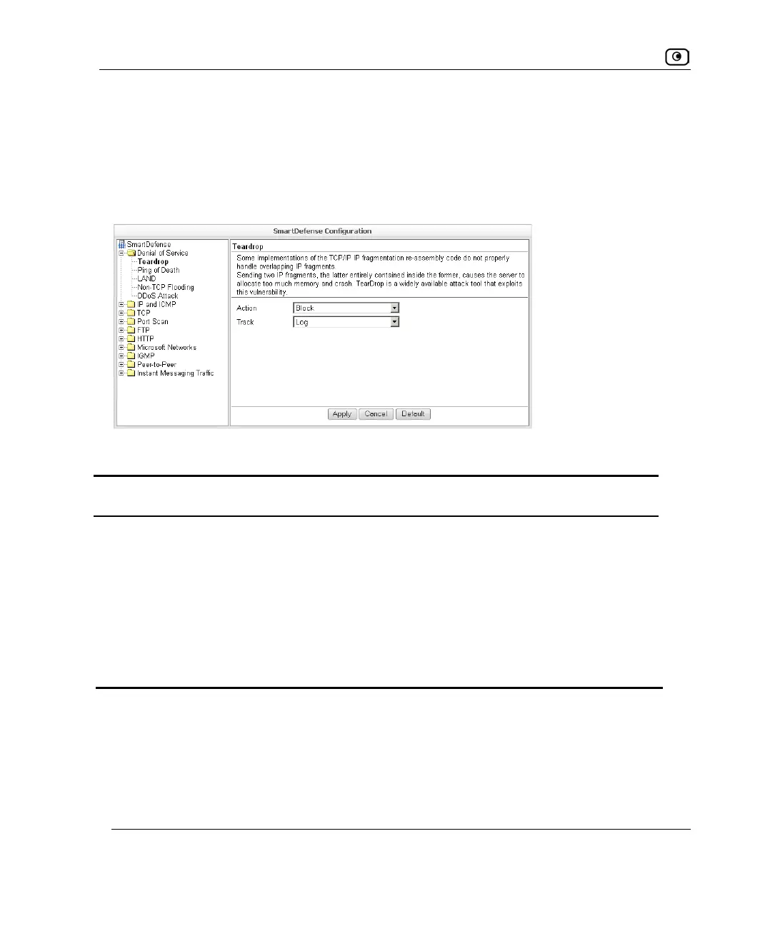 Track Specify whether to log Teardrop attacks, by selecting one of the following: