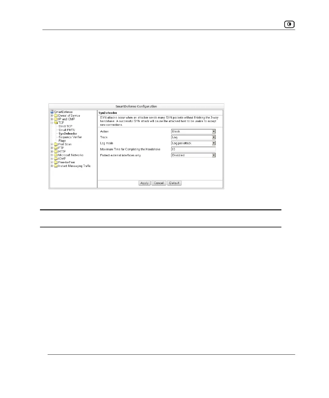 Action Specify what action to take when a SYN attack occurs, by selecting one of