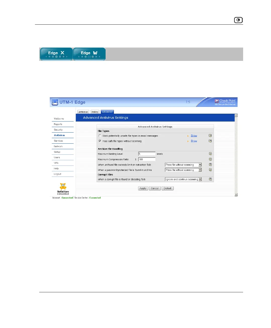 1. Click Antivirus in the main menu, and click the Advanced tab.