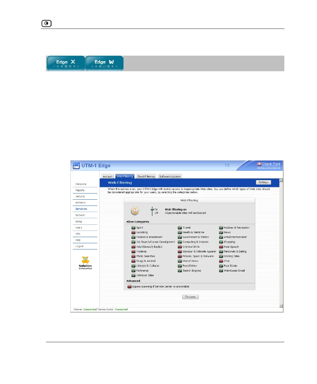 1. Click Services in the main menu, and click the Web Filtering tab.