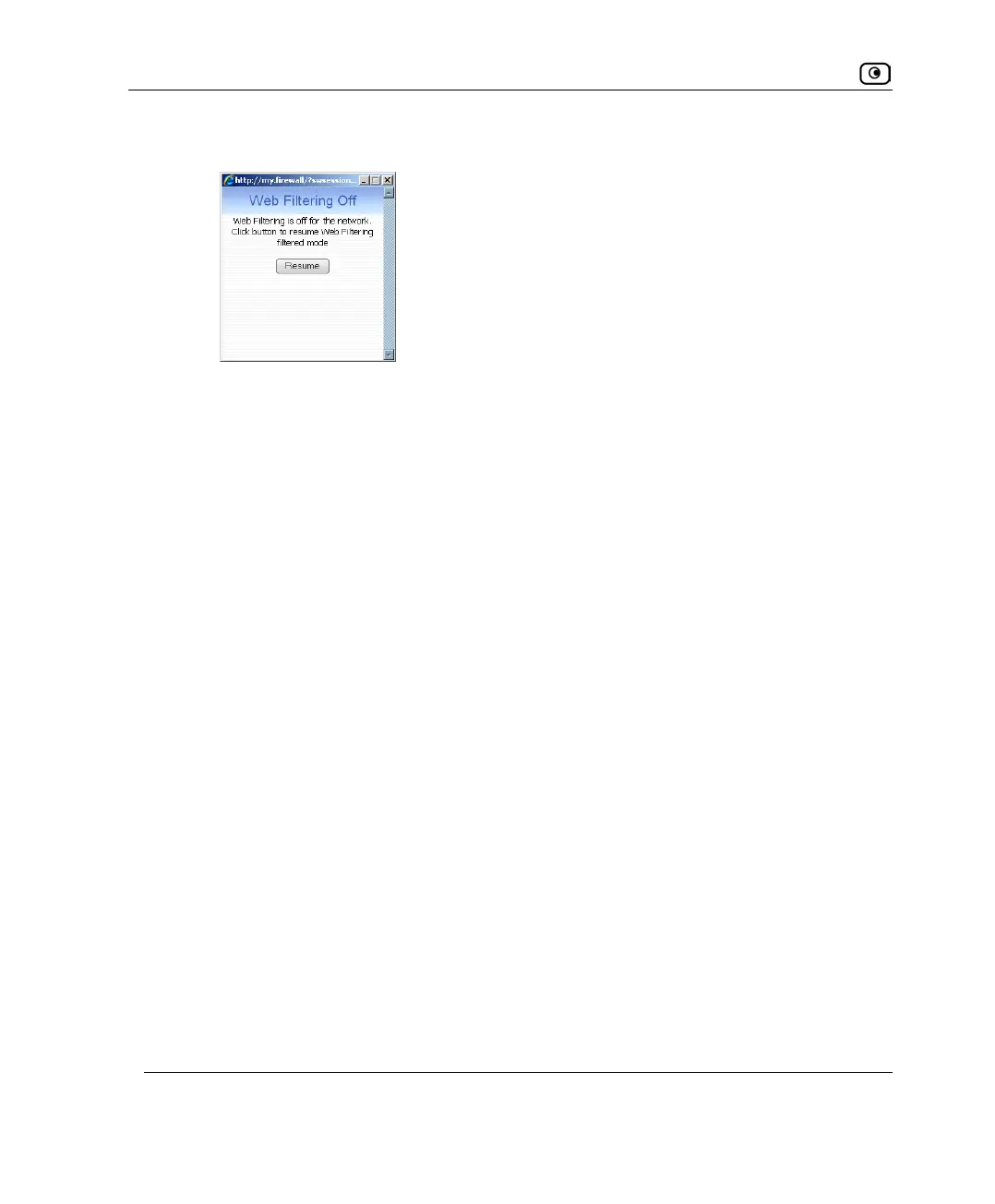 • If you clicked Resume in the Web Filtering Off popup window, the popup