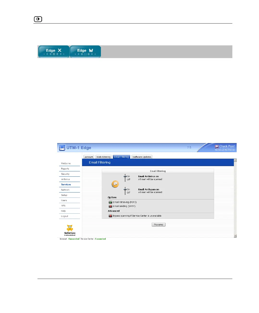 1. Click Services in the main menu, and click the Email Filtering tab.