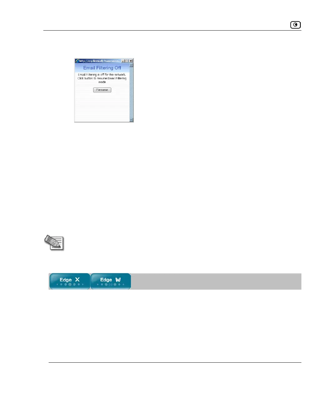 • If you clicked Resume in the Email Filtering page, the button changes to