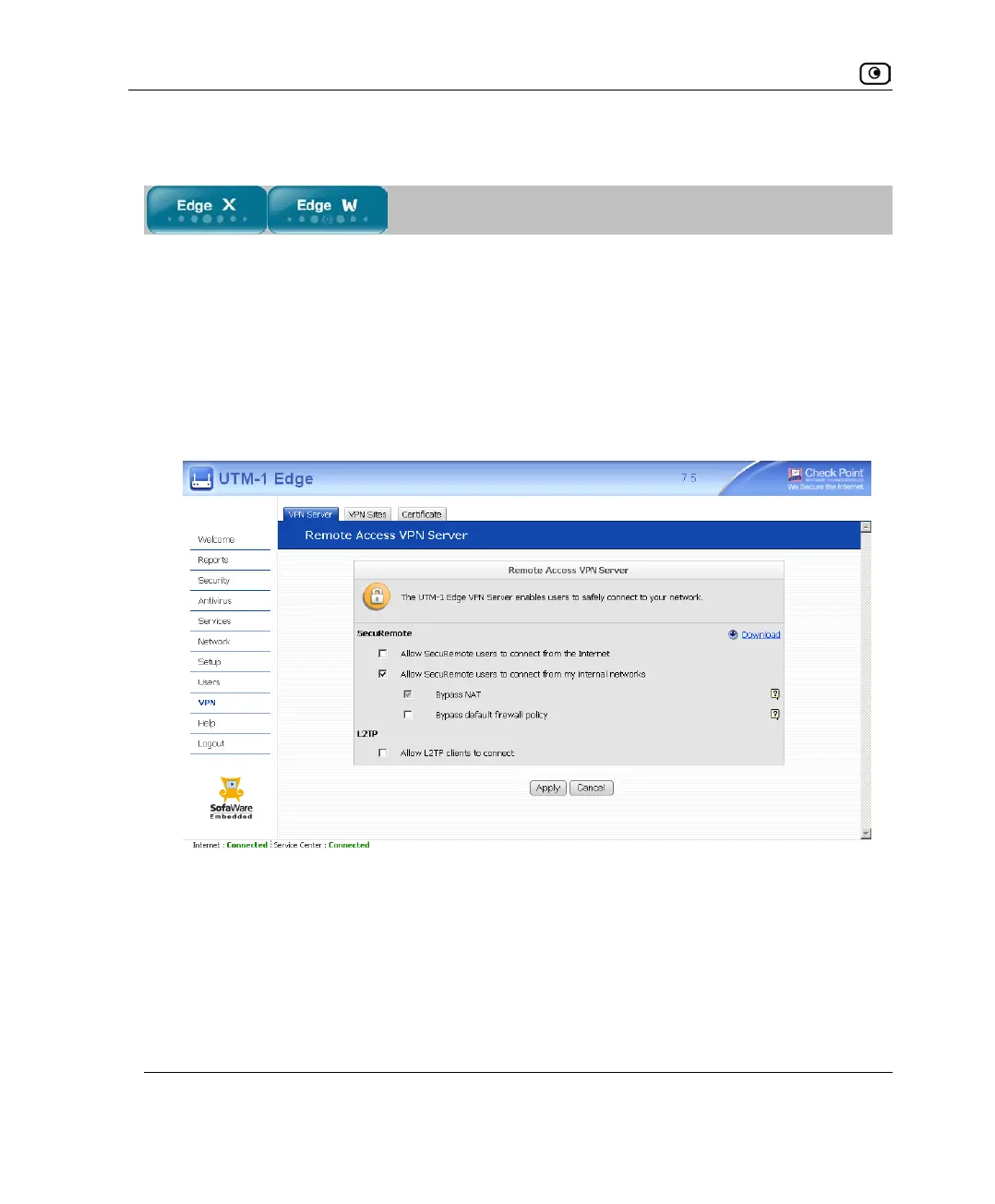 The SecuRemote VPN Server page appears.