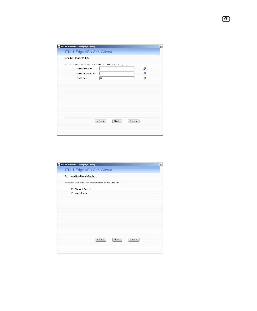• If you chose Route Based VPN, the Route Based VPN dialog box appears.