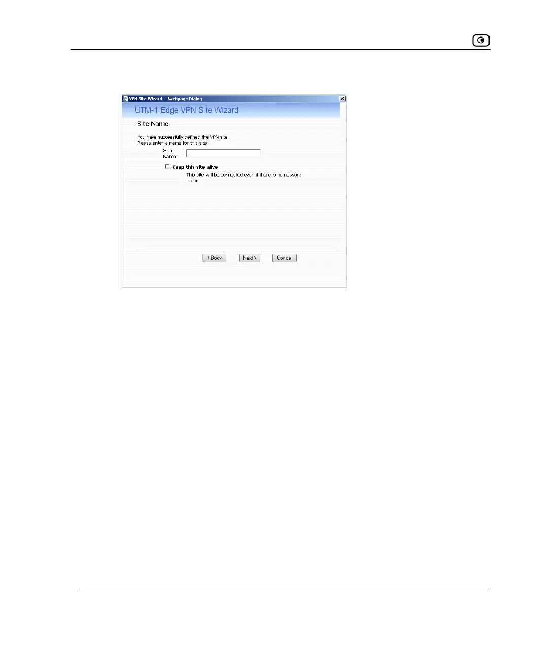 between the UTM-1 appliance and the VPN site, select Keep this site alive.