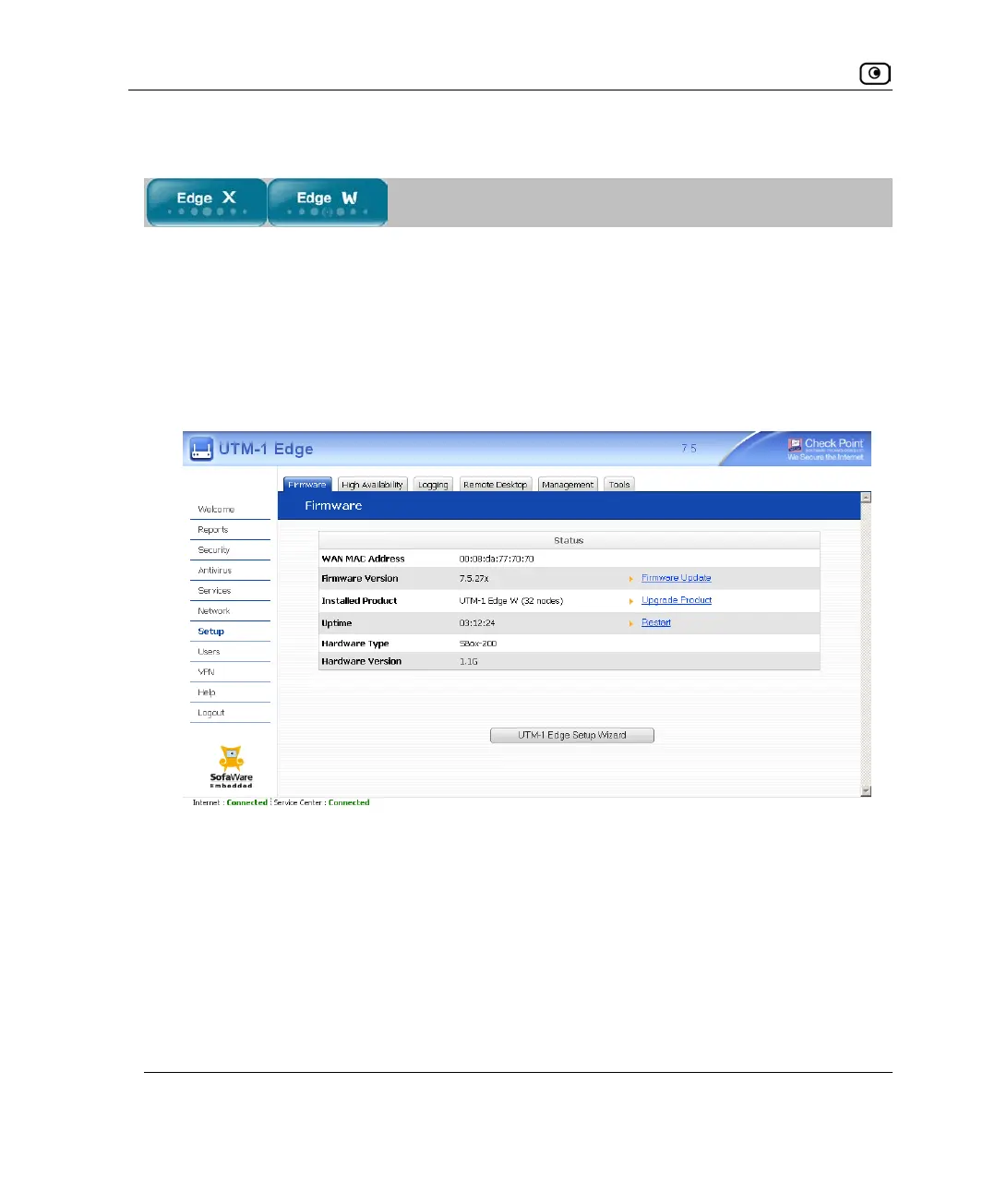 • Click Setup in the main menu, and click the Firmware tab.