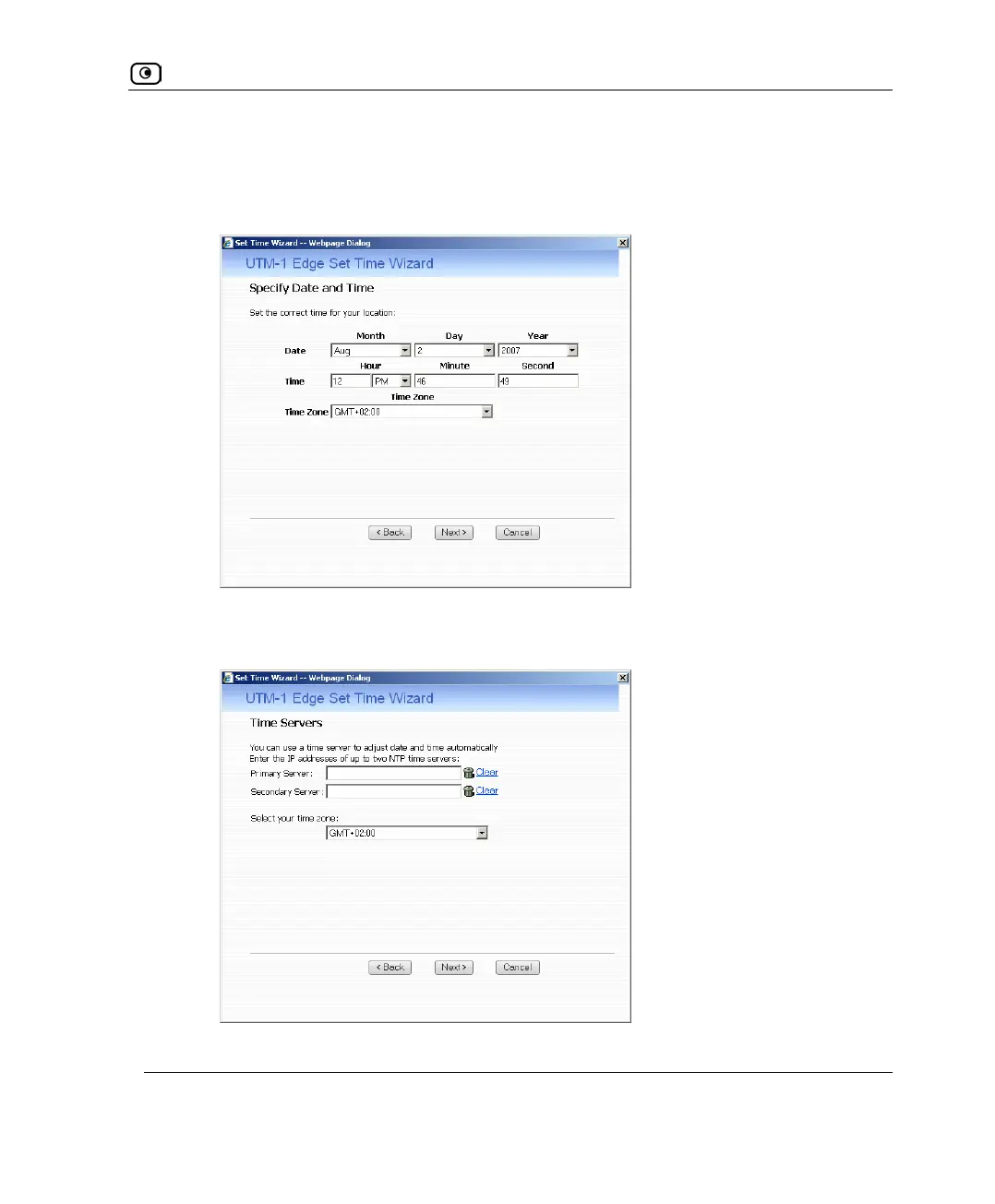 • If you selected Use a Time Server, the Time Servers dialog box appears.