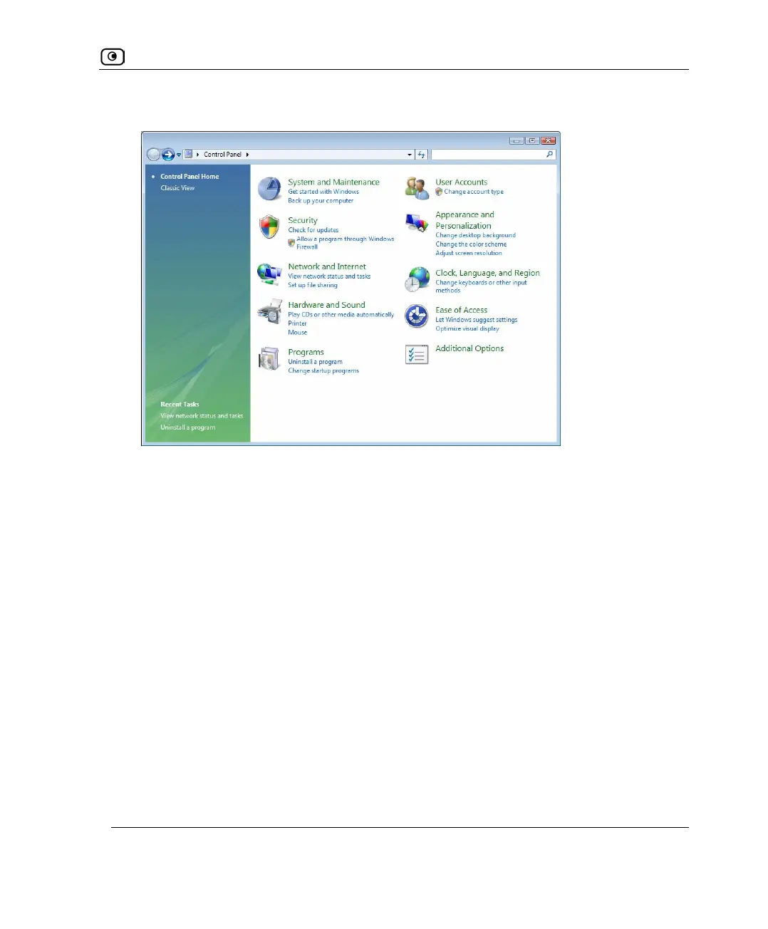 The Control Panel window opens.