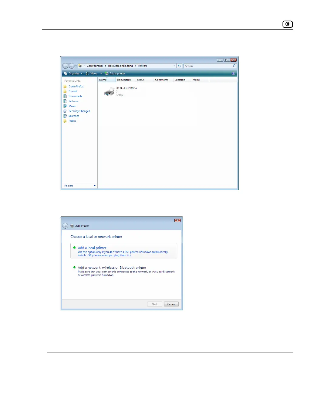 The Add Printer wizard opens displaying the Choose a local or network printer screen.