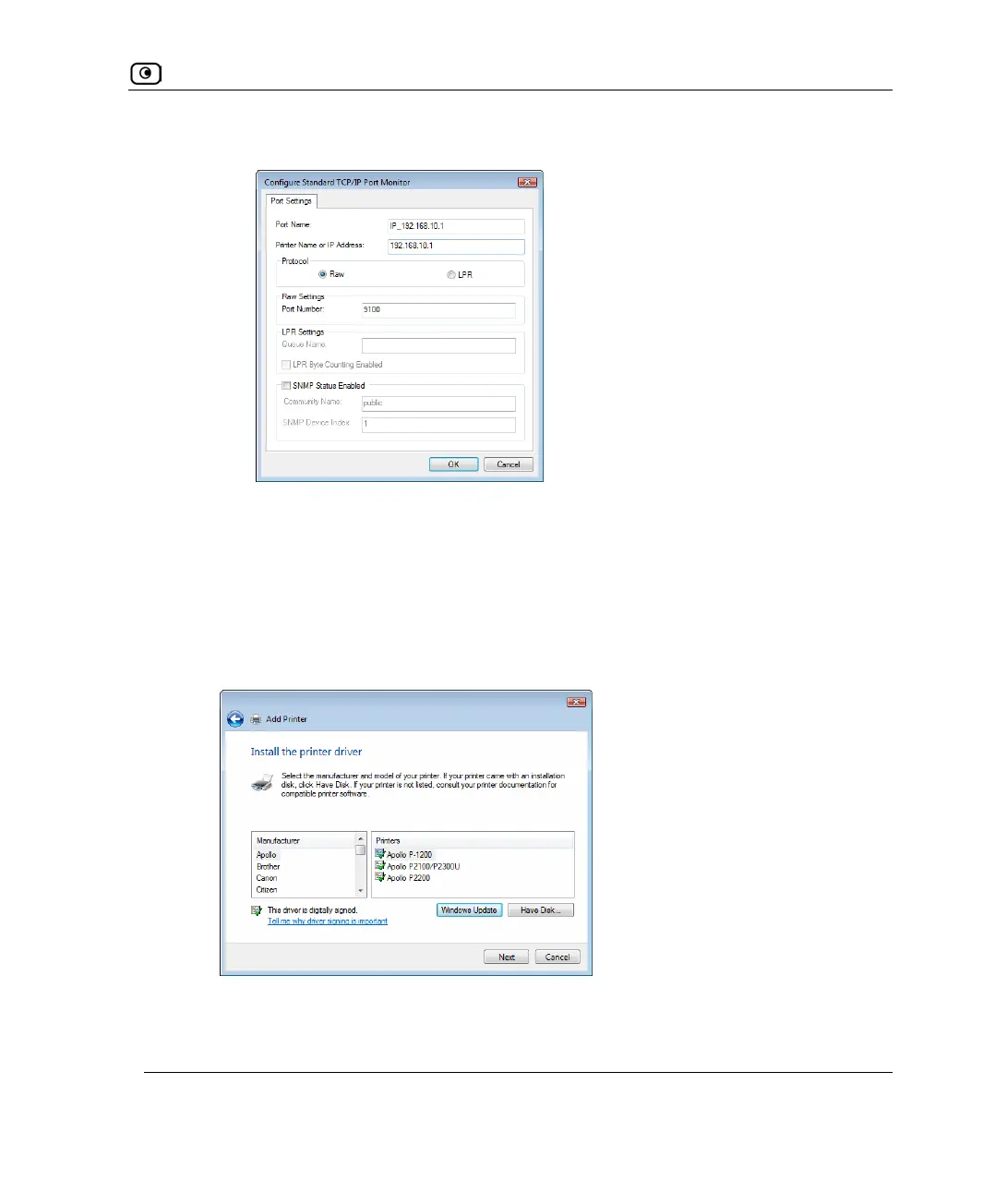 4) In the Port Number field, type the printer's port number, as shown in