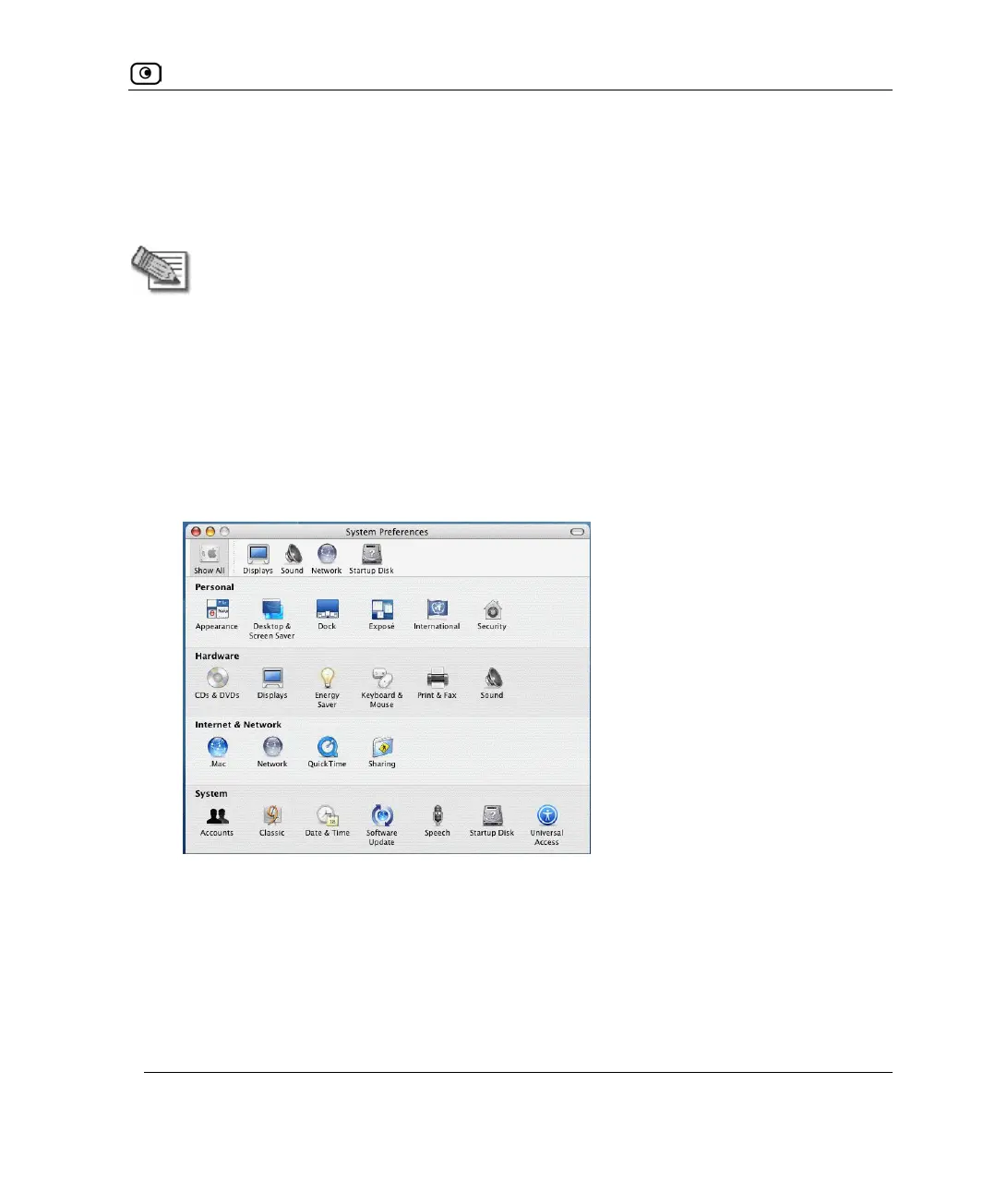 Note: This procedure may not apply to earlier MAC OS-X versions.