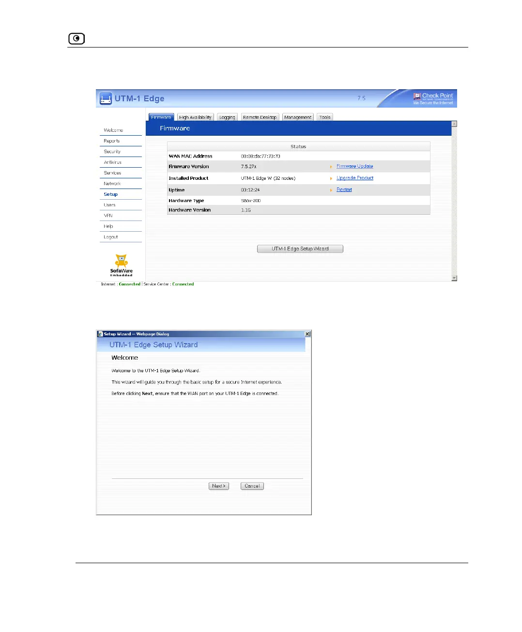 The UTM-1 Setup Wizard opens with the Welcome page displayed.