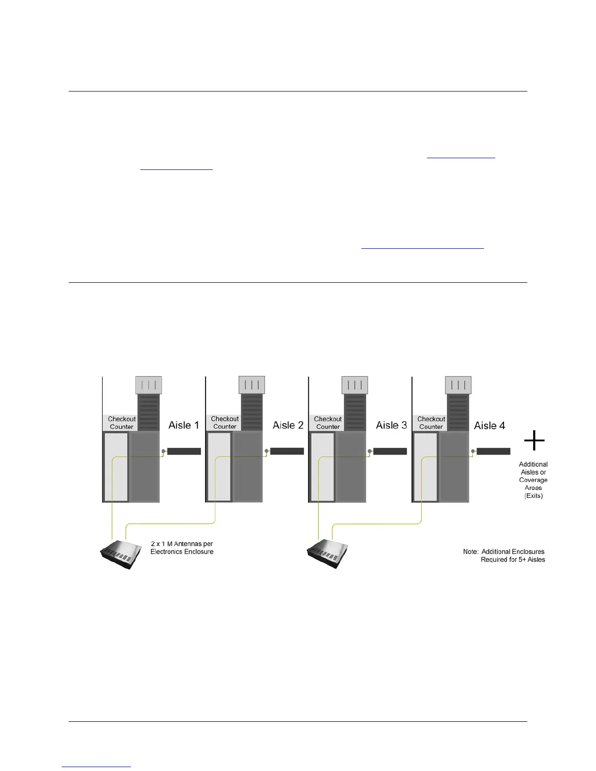 configuration is in a grocery store or large department store. This setup allows EAS coverage
