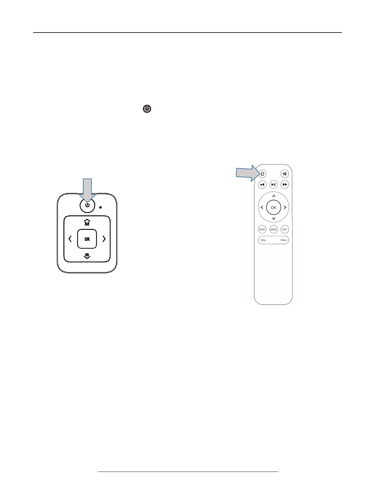 Press the “ power ” button ( ) on the control panel or remote control to turn on