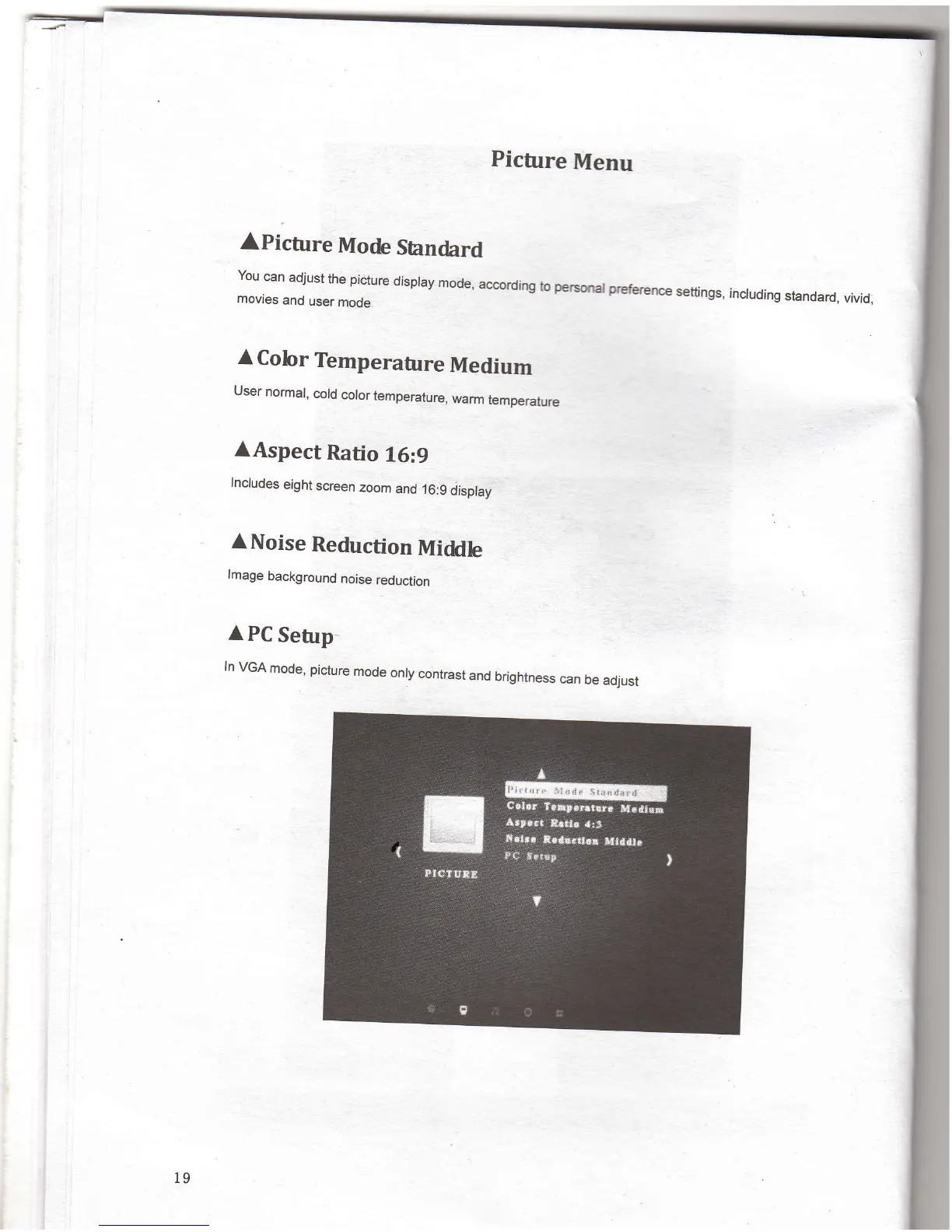 Cheerlux CL312A - Picture Menu; Picture Mode; Color Temperature; Aspect Ratio