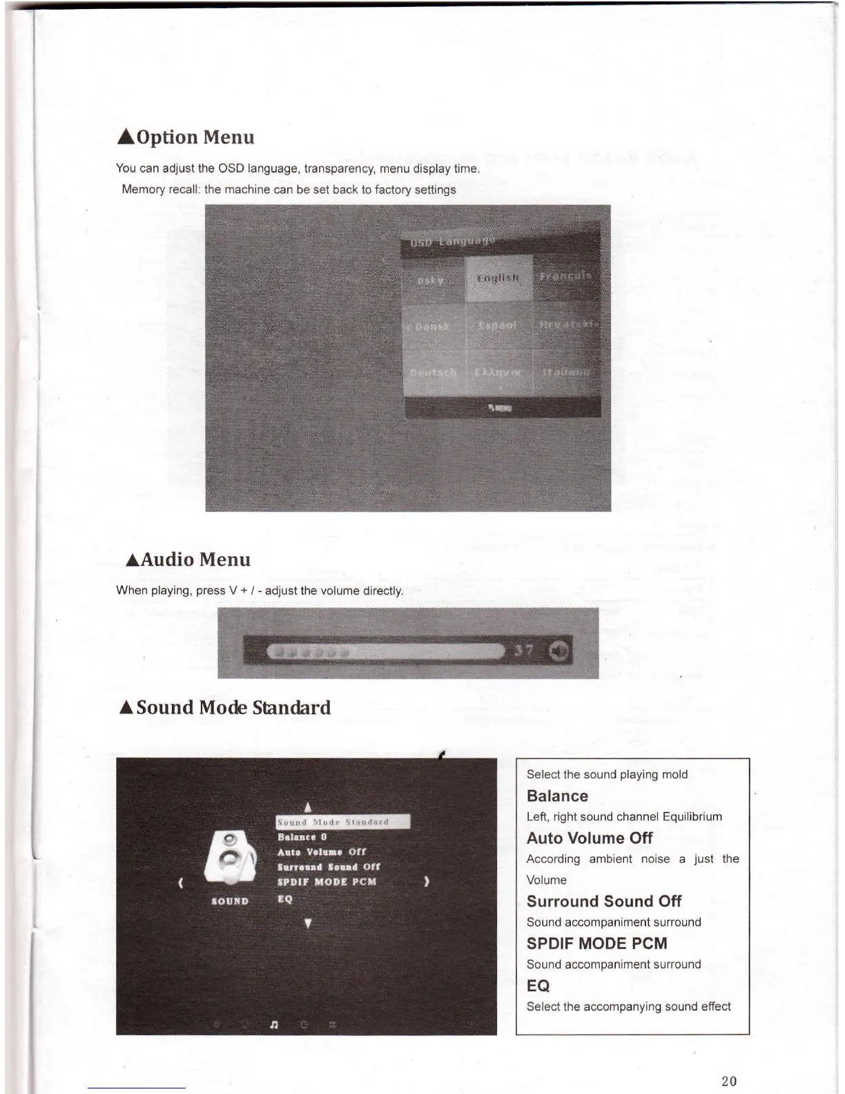 YOu oan adlustthe osD anguage,transparency menu dispIay ume