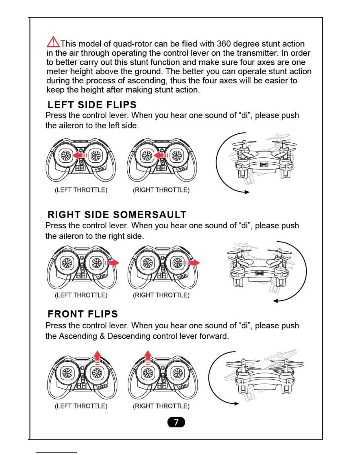 in the air through operating the control lever on the transmitter. In order