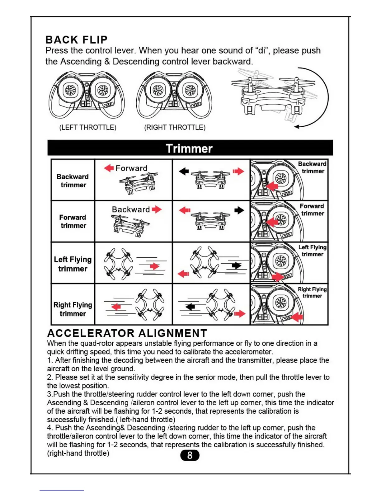 When the quad-rotor appears unstable flying performance or fly to one direction in a