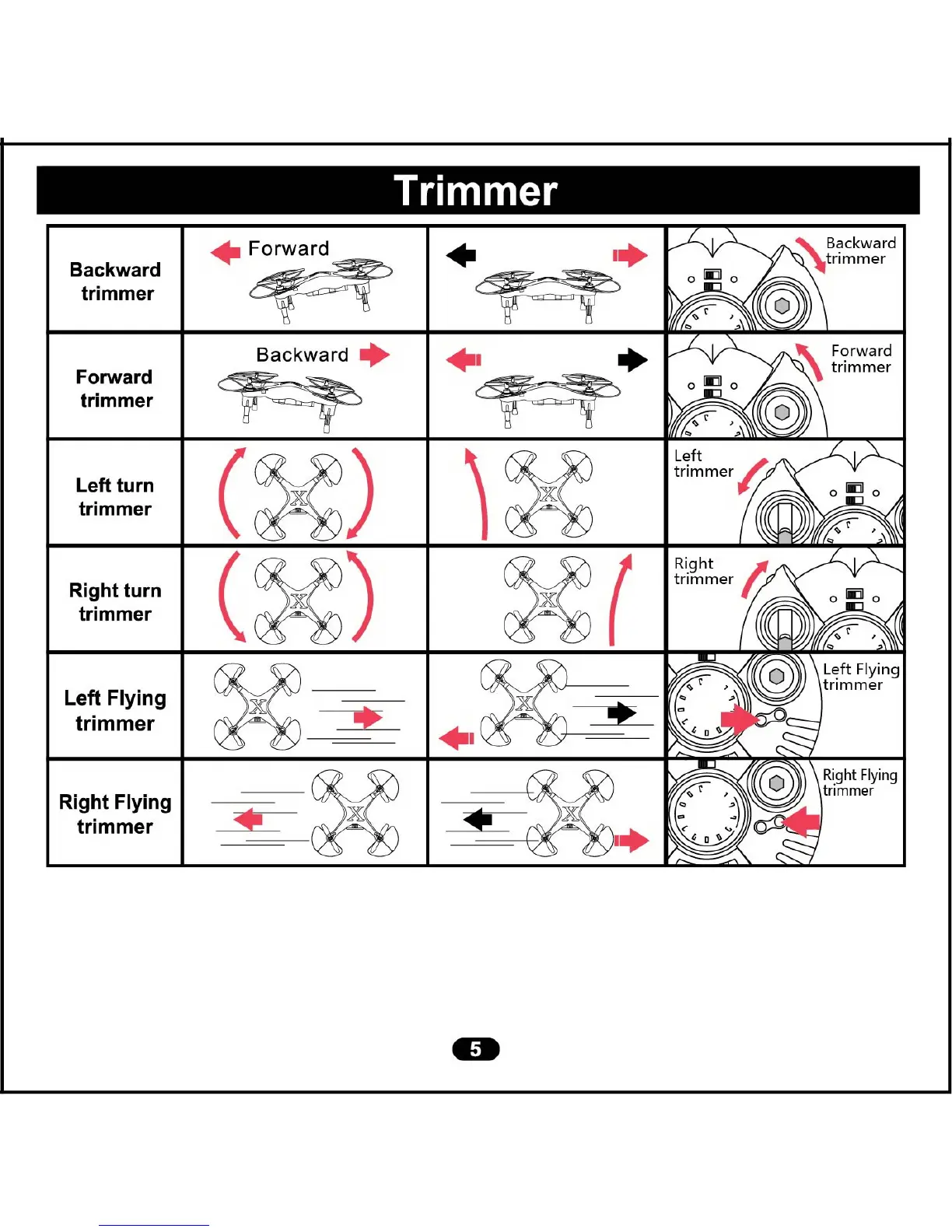 Cheerson CX-30 - Trimmer Controls; Forward;Backward Trimming; Left;Right Turn Trimming; Left;Right Flying Trimming