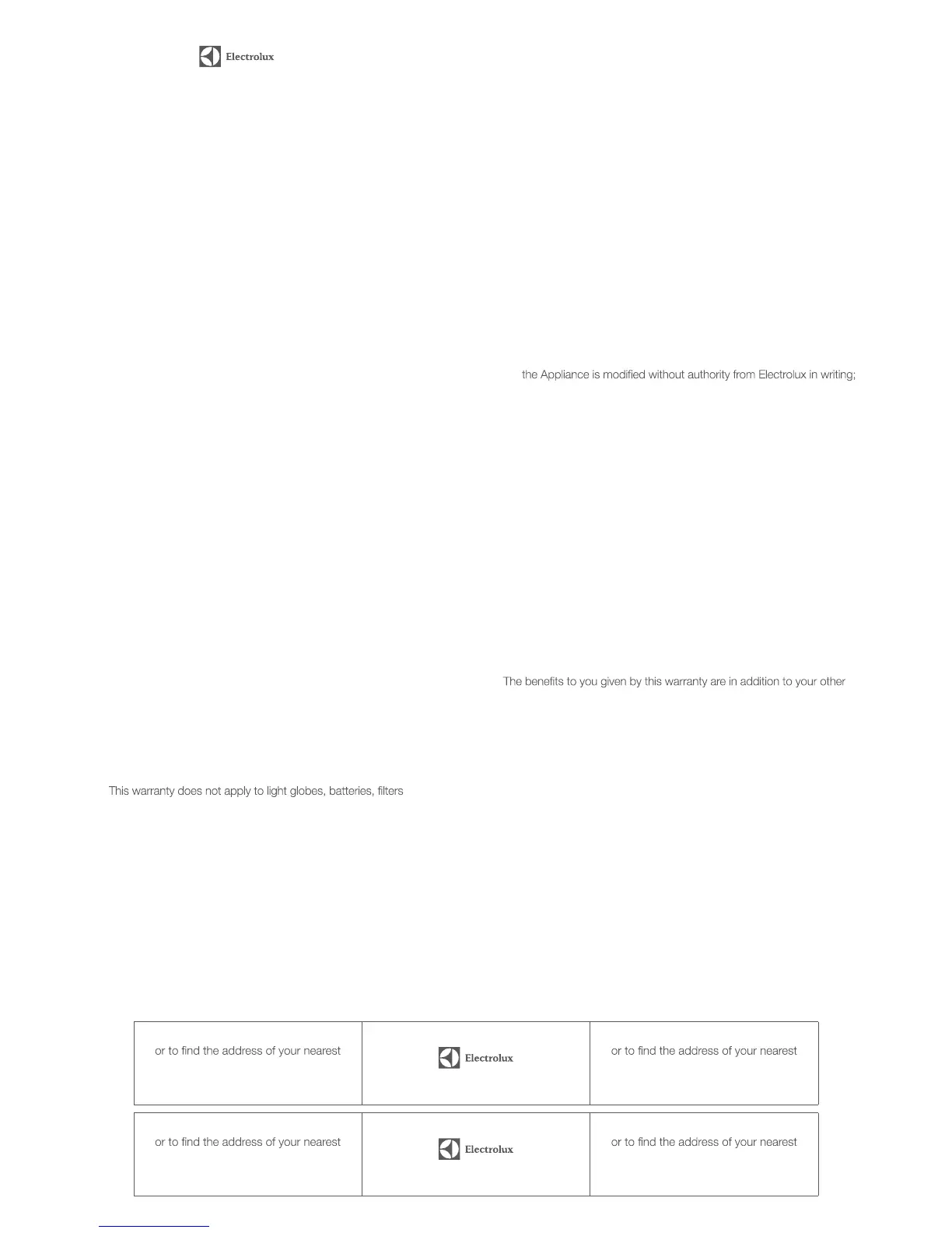 is due to faulty or defective parts or workmanship. Electrolux is not liable