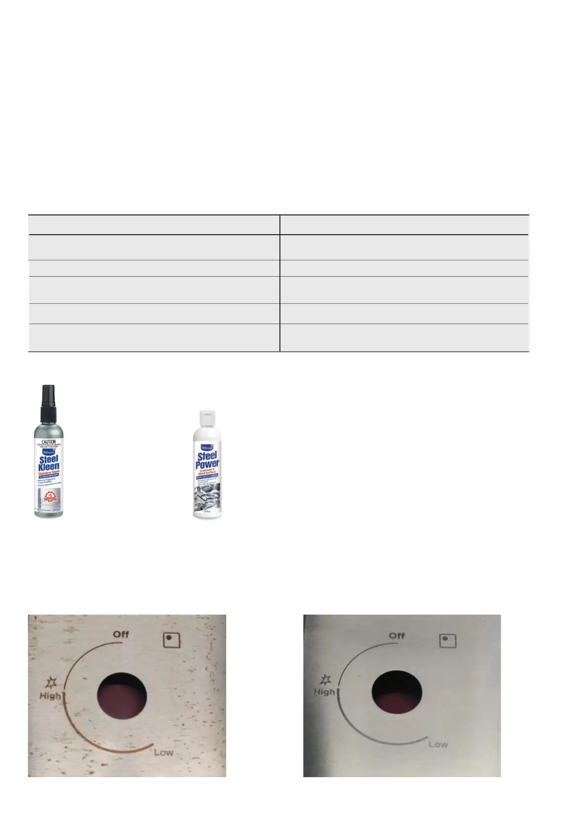 stains, use a suitable stainless steel cleaner Steel Kleen (ACC032 - Available from our web shop), apply with a soft cloth and clean