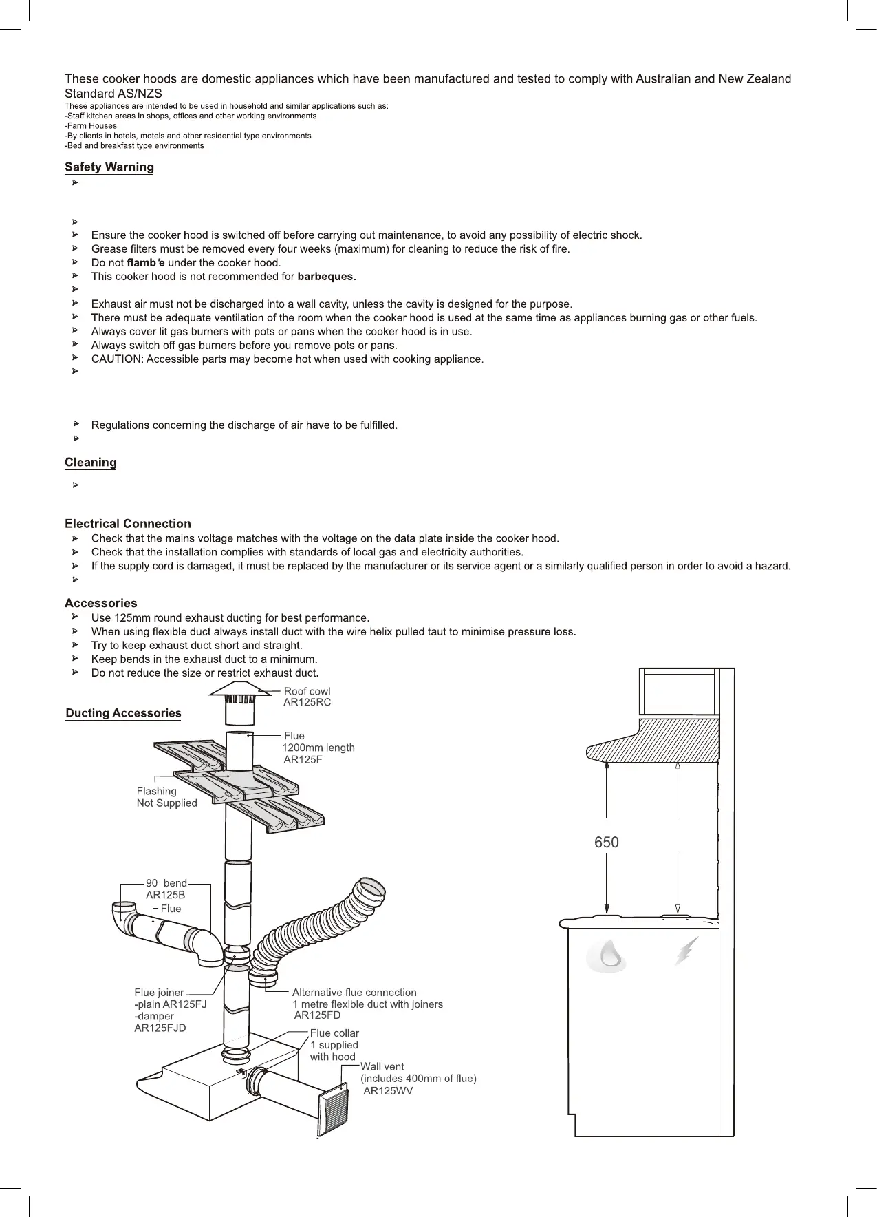Range hoods and other cooking fume extractors may adversely affect the safe operation ofappliances burning gas or other fuels (including those