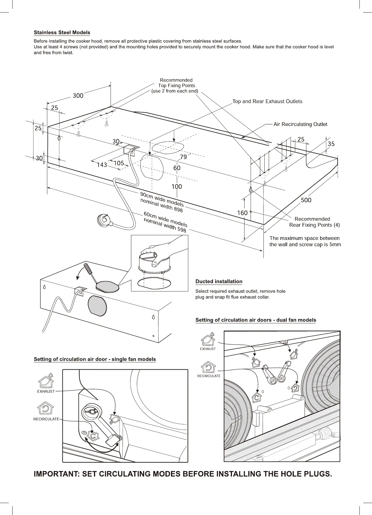 Chef cooking CRF610SB - Stainless Steel Model Installation; Circulation Air Door Settings