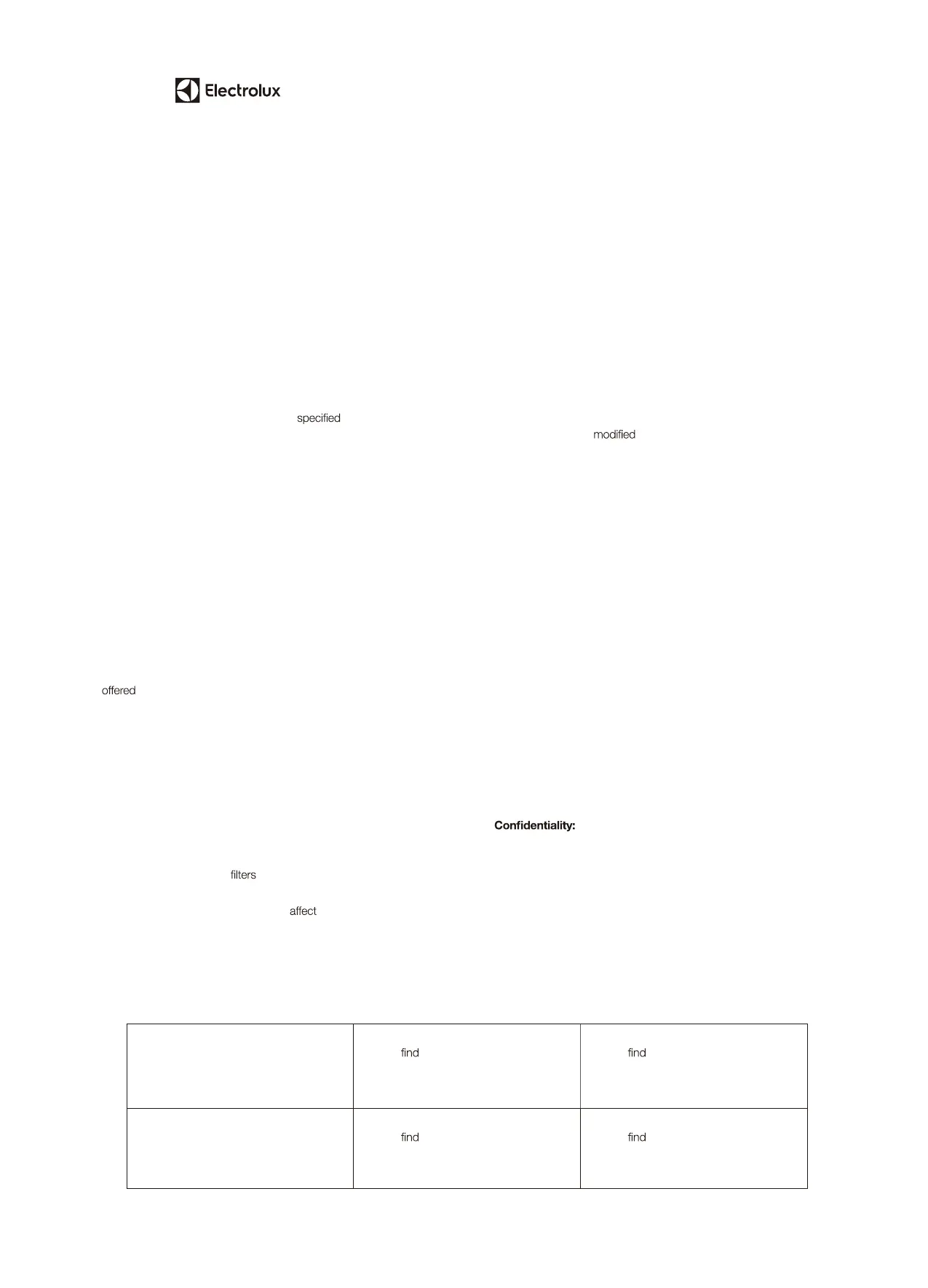 4. Repair or replace warranty: During the Warranty Period, Electrolux