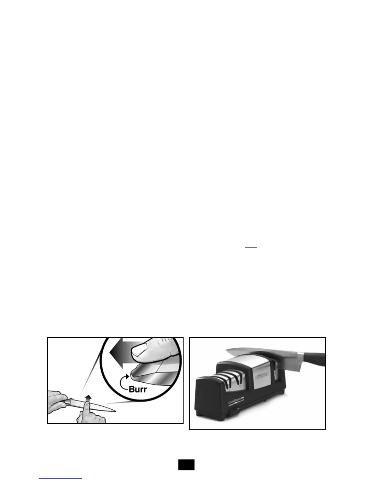 that the two sharpening disks are turning. The finished blade should cut paper smoothly