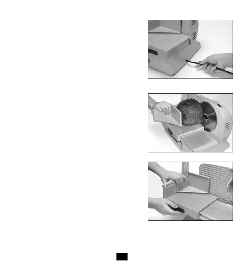 carriage toward you. Hold food pusher with your right hand,