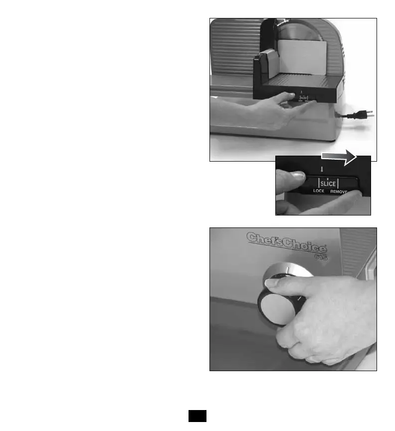 3. Set the thickness knob (Fig. 2) to the desired slice