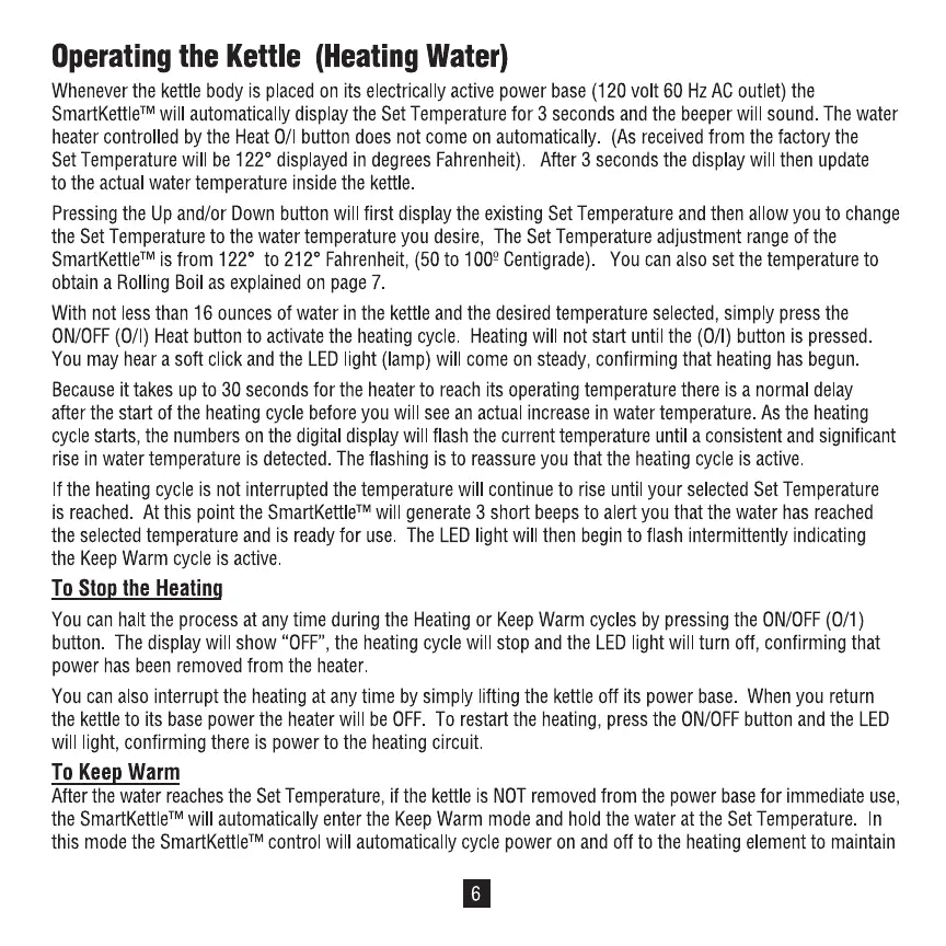 Chef's Choice 688 - Operating the Kettle; Heating Water; To Stop the Heating; To Keep Warm