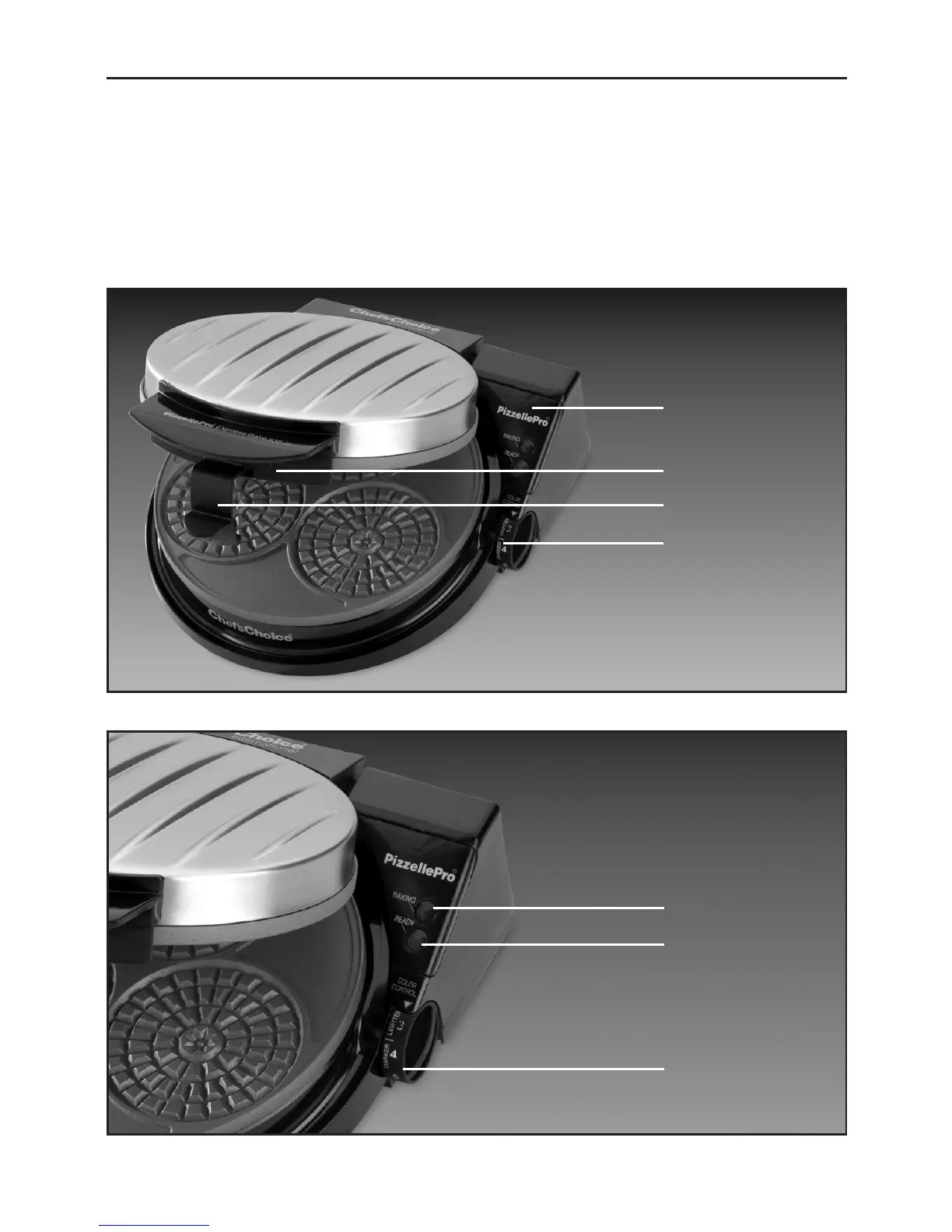 being heated. The green “Ready” light turns on when the pizzelle plates are fully heated and